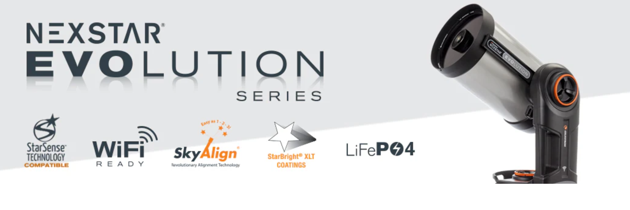 Un nuovo capitolo nella storia della serie di telescopi di maggior successo: con NexStar Evolution Celestron fa un passo avanti nell’evoluzione dei suoi trasportabili telescopi NexStar. La montatura ancora migliorata può essere gestita anche in modalità wireless tramite le app per smartphone appositamente progettate. Ottimo anche il fatto che Celestron sia rimasta fedele alle ben collaudate ottiche SC!