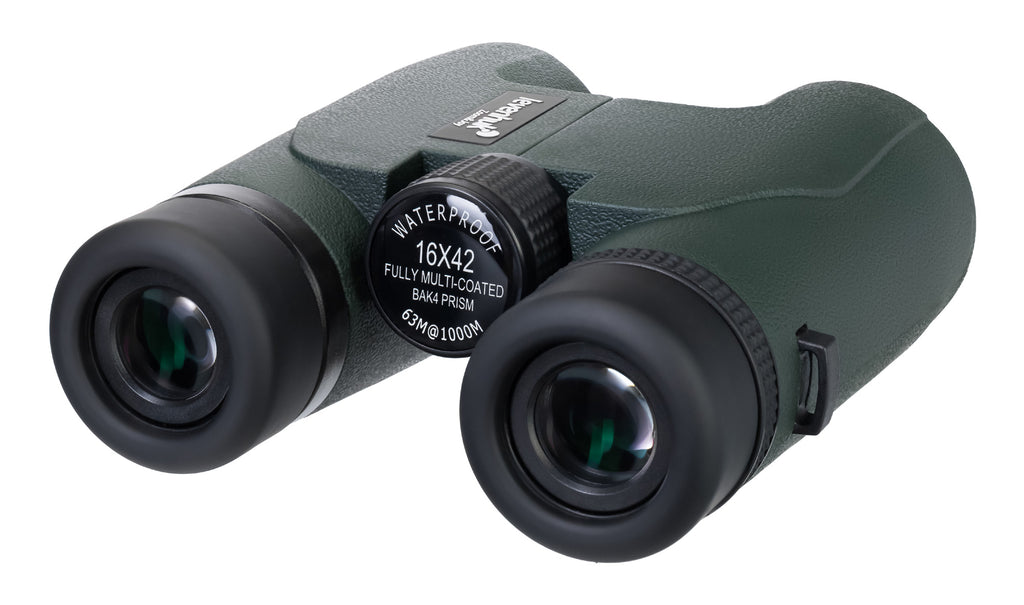 È facile regolare il binocolo Levenhuk Karma PRO 16x42 in base alla vista dell’utente. È possibile modificare la distanza interpupillare e regolare facilmente le diottrie con l’apposito anello di regolazione posto sull’oculare destro. Il corpo in gomma goffrata, di colore verde militare, non scivola di mano. Il binocolo Levenhuk Karma PRO 16x42 è completamente impermeabile, pertanto può essere utilizzato in qualsiasi condizione meteorologica!