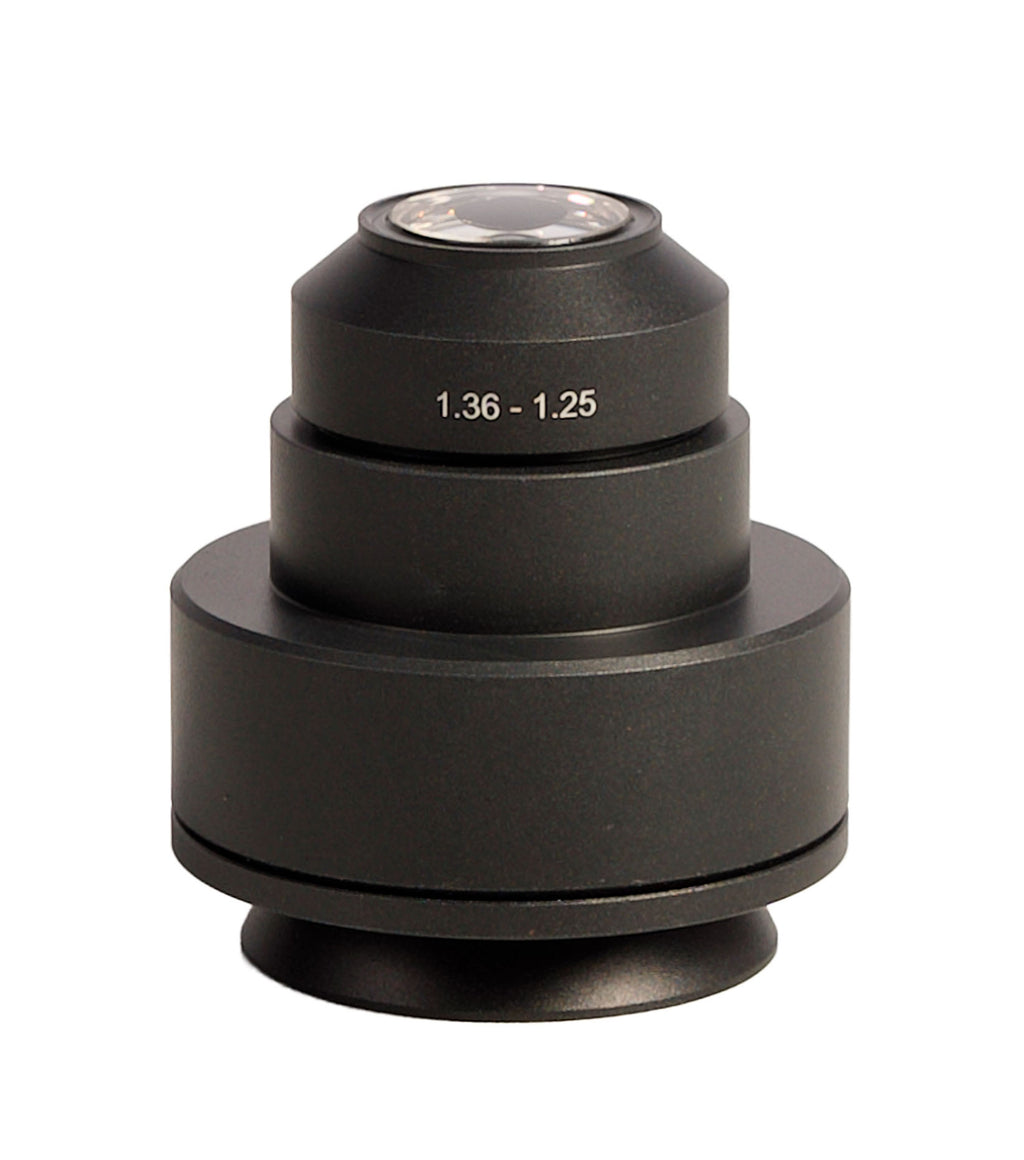 Per poter usare questo condensatore per campo oscuro è necessario abbinarlo a un obiettivo con un’apertura numerica (N.A.) inferiore a quella del condensatore. L’apertura del condensatore ad olio è di 1,3–1,26 e, pertanto, viene utilizzato con obiettivi di 20x e superiori.