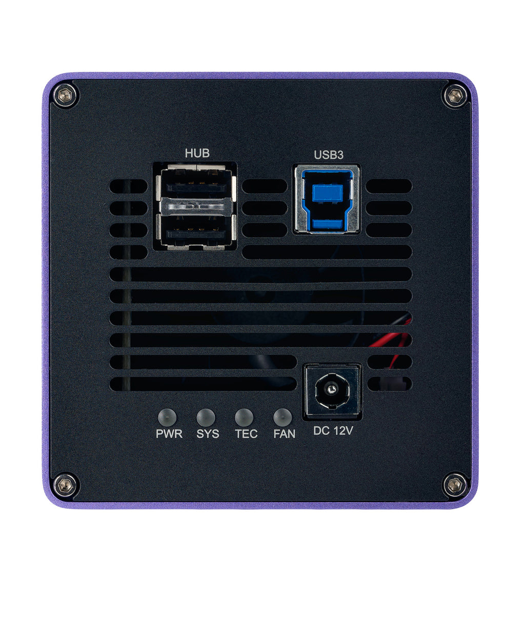 Un’altra caratteristica di questo modello è l’elemento di Peltier integrato (modulo termoelettrico). Durante il funzionamento prolungato, il sensore si riscalda. Questo porta a rumore termico e al deterioramento della qualità dell’immagine. L’elemento di Peltier mantiene una temperatura di 42°C inferiore alla temperatura ambiente e raffredda il sensore in modo che possa essere utilizzato per lunghi periodi di tempo e prendere tempi di posa lunghi.