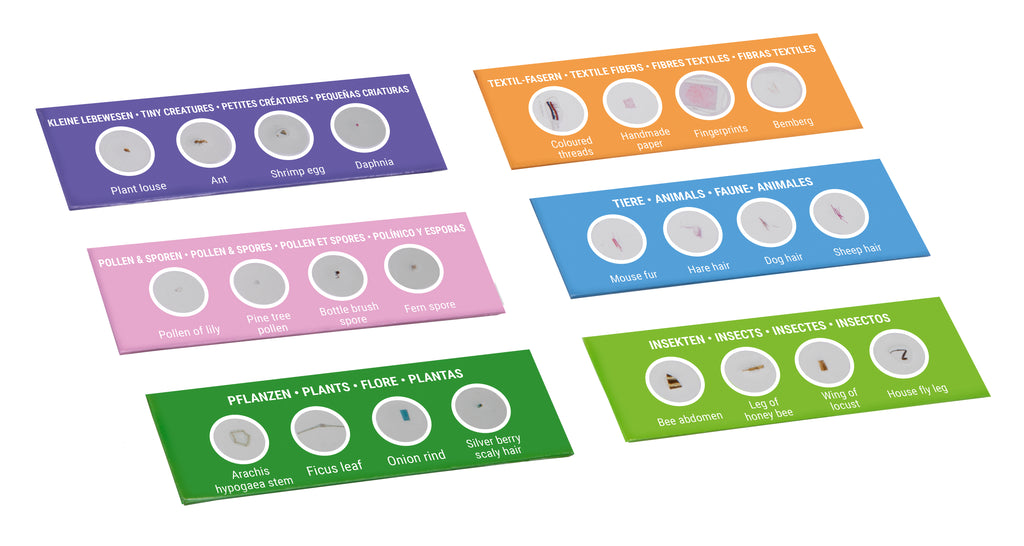 6 portacampioni con un totale di 24 preparati permanenti diversi: