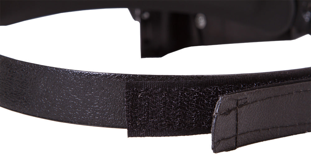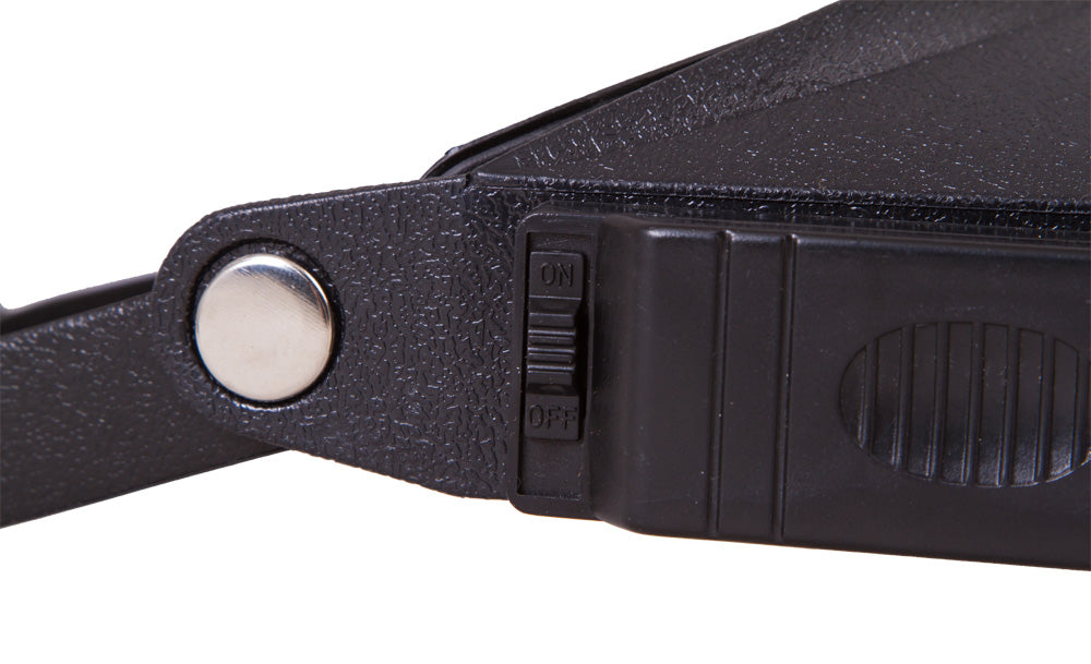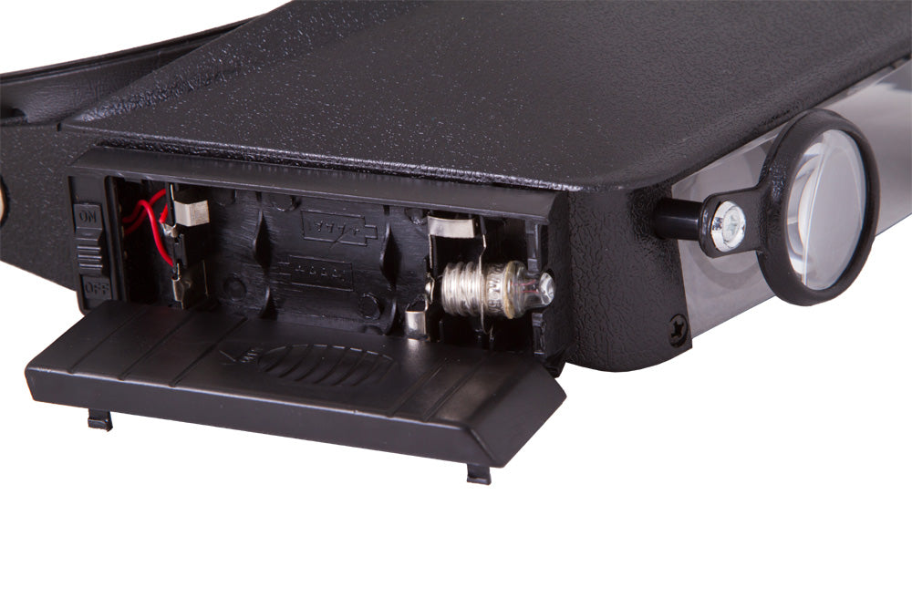 Assicurare la lente d’ingrandimento alla testa è particolarmente facile grazie alla fascia con allacciatura in Velcro. In questo modo, le mani saranno libere di eseguire qualsiasi tipo di lavoro con piccoli componenti. Per una maggior praticità, la lente d’ingrandimento è dotata di illuminazione incorporata: un luminoso LED a lato di ciascuna lente. L’intensità della luce è sufficiente a lavorare persino al buio totale. L’illuminazione è alimentata da batterie AAA (non incluse).