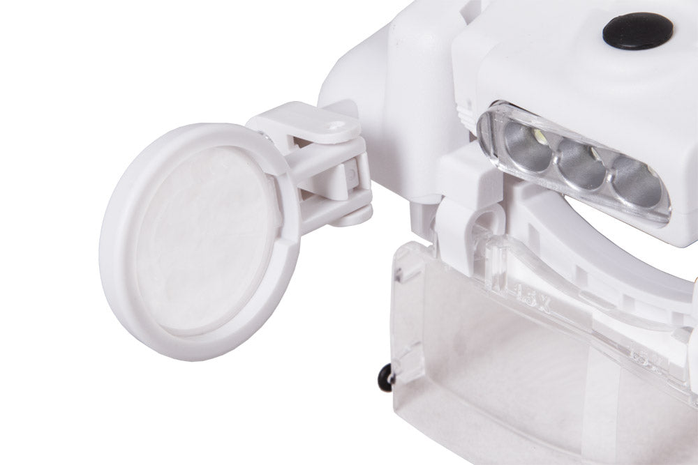 Le lenti d’ingrandimento frontali ricaricabili Levenhuk Zeno Vizor HR sono strumenti ottici insostituibili per lavori di precisione che consentono di selezionare l’ingrandimento appropriato, trasformandosi all’occorrenza anche in occhiali di sicurezza. Tali strumenti sono venduti con lenti a diverso ingrandimento, che possono essere facilmente combinate. Inoltre, è possibile usare una lente girevole posizionata sull’occhio destro. Se non è necessario alcun ingrandimento, basta ruotare le lenti verso l’alto o usare una lente 1,5x. Tale lente trasforma lo strumento in un paio di occhiali di sicurezza da cantiere. Le caratteristiche ottiche di questo strumento sono eccellenti.