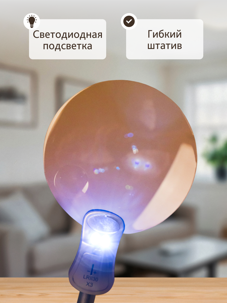 La lente di ingrandimento è installata su una base piana e stabile. La lente è montata su un collo flessibile facilmente regolabile in qualsiasi posizione. La lente di ingrandimento Levenhuk Zeno Desk D5 è una lente di ingrandimento compatta e leggero che potete portare con voi ovunque.