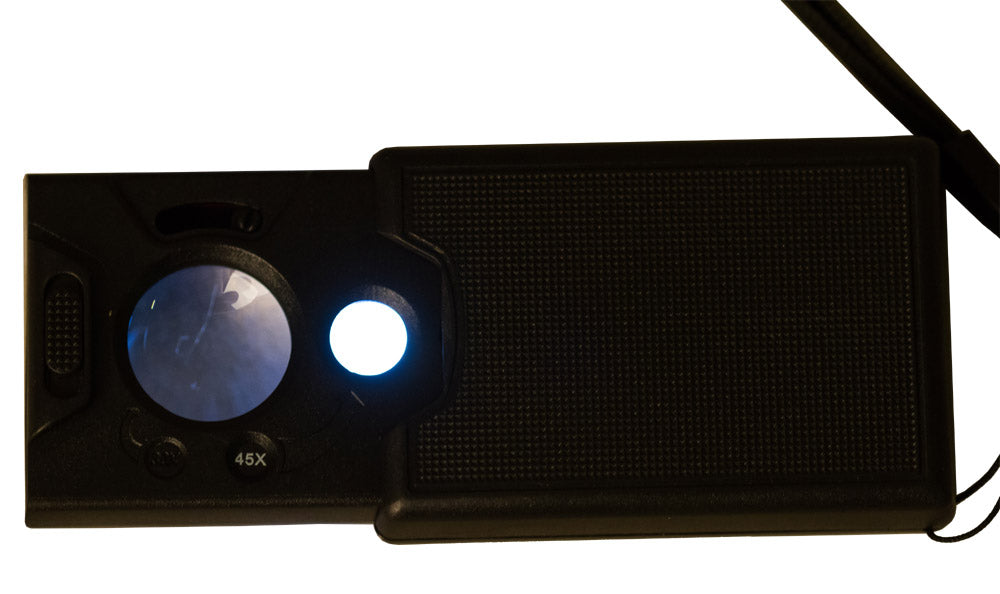 La lente ha due tipi di illuminazione integrati: LED e ultravioletta. La luce LED consente di illuminare uniformemente gli oggetti osservati e la luce ultravioletta aiuta a vedere la filigrana sulle banconote. Le lampadine sono posizionate lungo il telaio della lente e si accendono con un apposito pulsante.