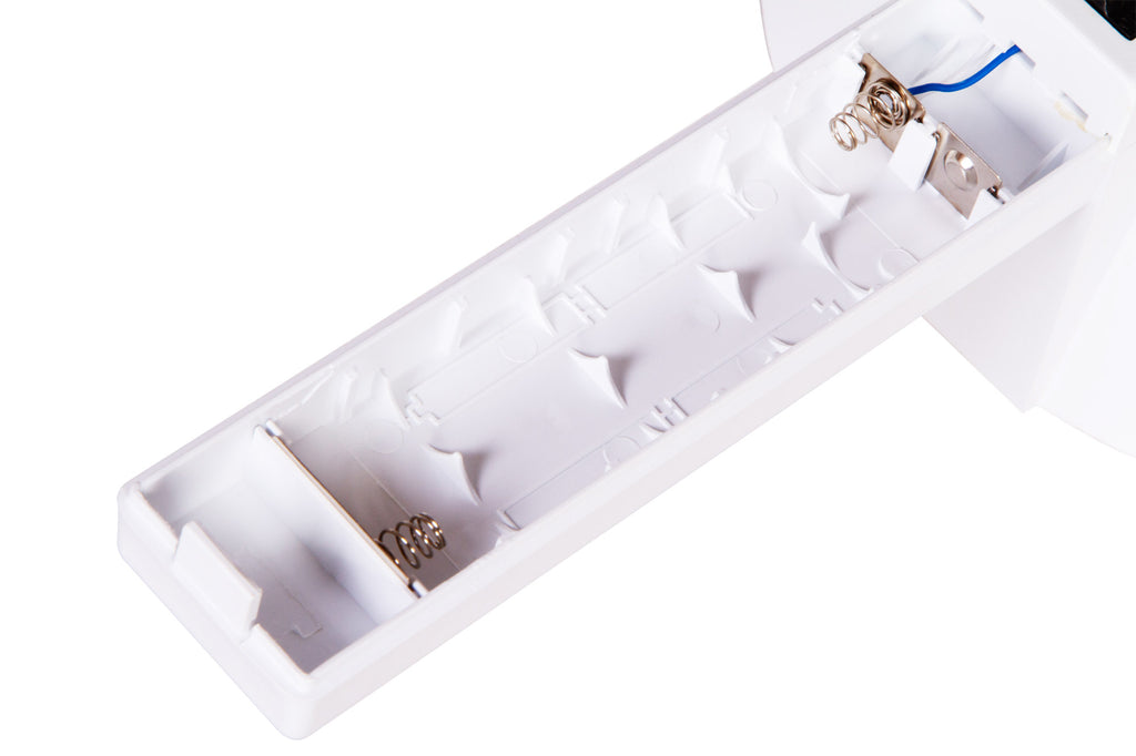 Il telaio e l’impugnatura di questa lente sono realizzati in plastica. La luce è alimentata a batterie (da acquistare separatamente).