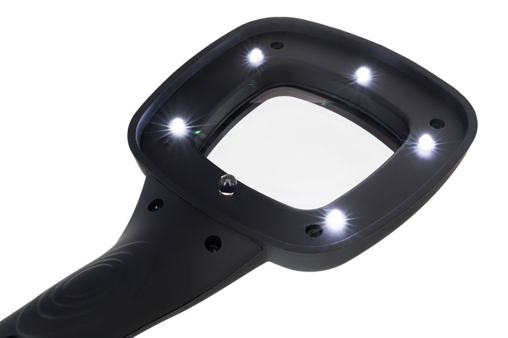 Tutti gli elementi ottici di questa lente sono realizzati in vetro polimero ottico. E una lente leggerissima da tenere in mano. L’immagine offerta dall’ottica è nitida, senza sfocature o aberrazioni. La lente ha angolo di inclinazione variabile. È presente una luce LED proprio a fianco della lente. La luminosità è regolabile grazie a un in interruttore sul corpo della lente. Sono necessarie delle batterie (non incluse) per l’alimentazione della luce.