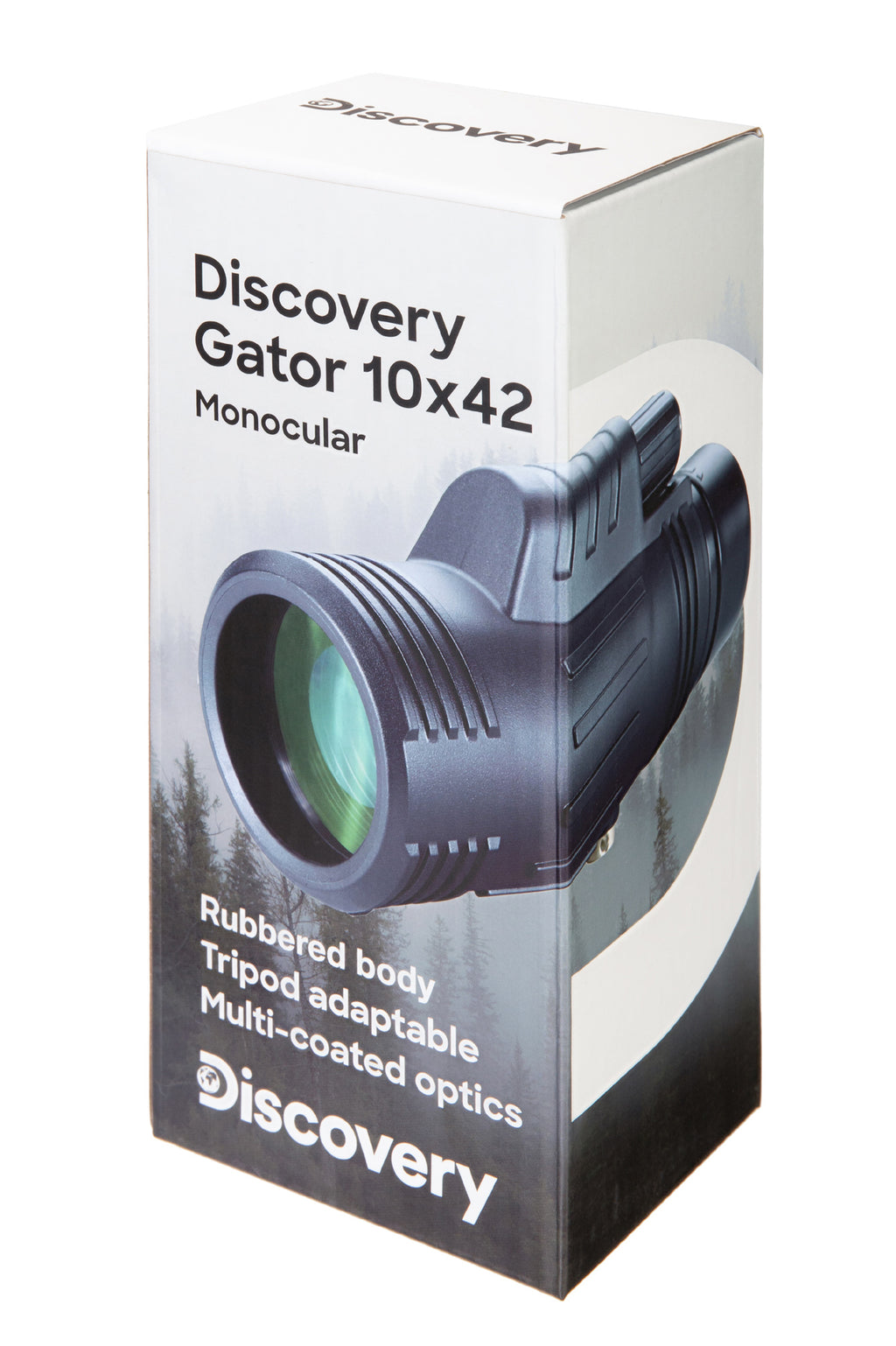 Il monoculare Levenhuk Discovery Gator 10x42 offre soluzioni ottiche per la classica osservazione di panorami. È compatto e leggero. Questo strumento ottico consente di osservare oggetti lontani con ingrandimento pari a 10x ed è inoltre dotato di un ampio campo visivo che ne ulteriormente la visibilità. I principali campi di utilizzo di questo strumento comprendono: osservare flora e fauna (pratico anche per la caccia), assistere a eventi sportivi allo stadio ed esaminare oggetti distanti.