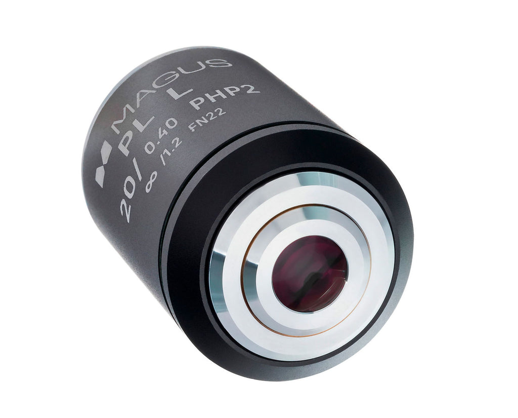 Il modello 20HP ha un ingrandimento 20x e funziona meglio con oculari con ingrandimento tra 10x e 20x. Insieme, formano un utile ingrandimento per microscopio da 200x a 400x. Non ha senso includere nel sistema oculari di ingrandimento differente poiché o non forniranno un’immagine sufficientemente informativa oppure saranno eccessivi e non porteranno alcun ulteriore beneficio. L’obiettivo distingue gli elementi campione a una distanza minima di 0,69 µm.