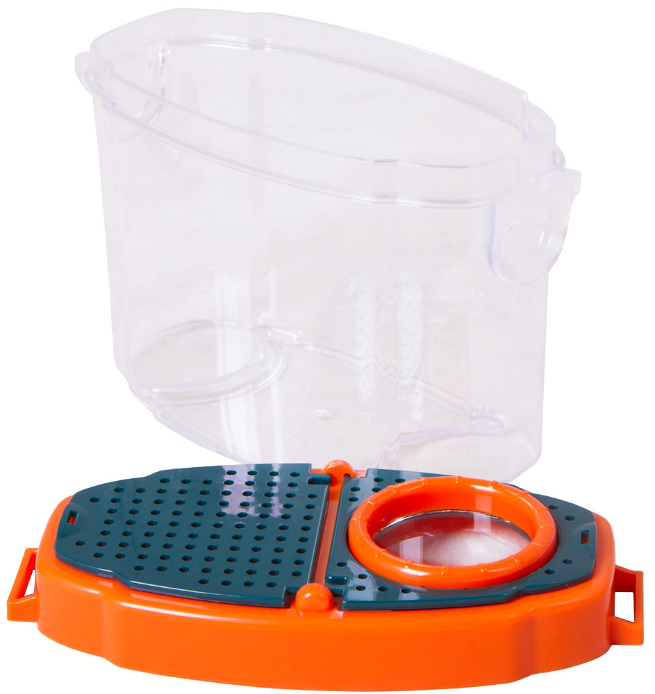 Il raccogli insetti Levenhuk LabZZ C3 è un piccolo contenitore trasparente con una lente d’ingrandimento 5x sul coperchio. Puoi inserire un insetto in questo barattolo per osservarne la vita e le abitudini, o riempirlo d’acqua e posizionare un girino o un piccolo pesce al suo interno. Con il raccogli insetti Levenhuk LabZZ C3, ogni passeggiata in campagna diventerà un’avventura emozionante!