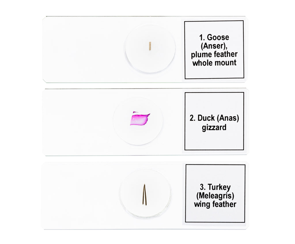 - Cinque campioni pronti all’uso per lo studio approfondito della classe degli uccelli