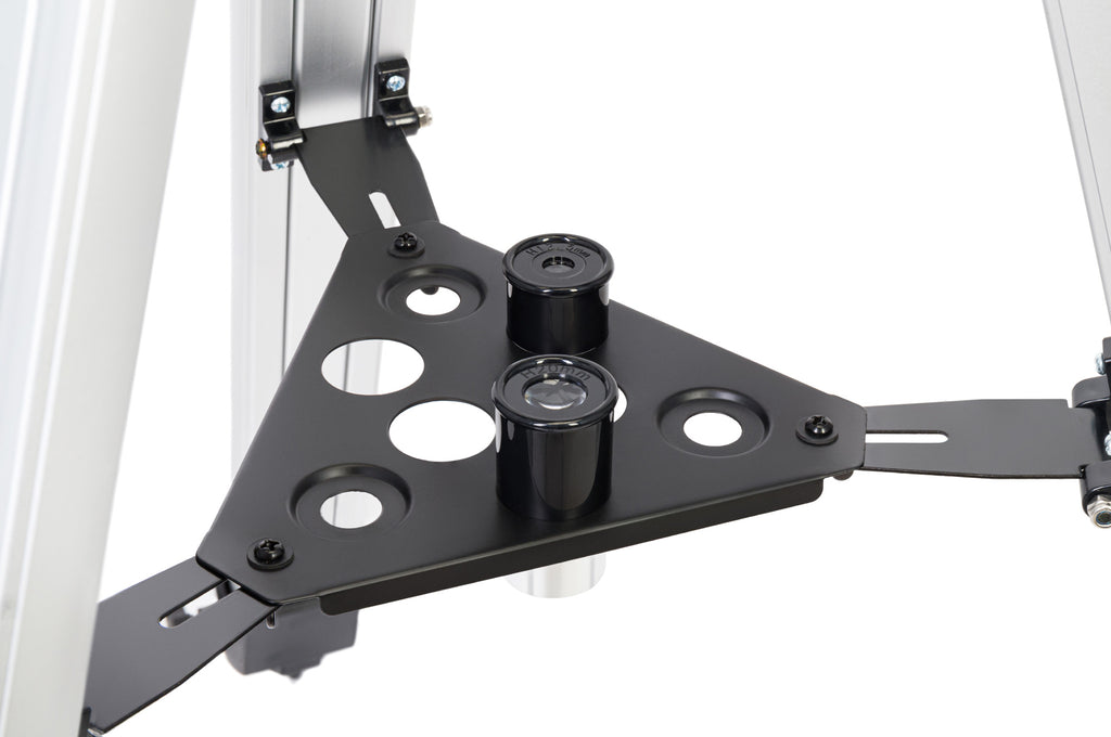 Questo telescopio si basa sullo schema ottico di un rifrattore acromatico. È dotato di lenti in vetro con trattamento antiriflesso. Il tubo ottico è installato su una montatura equatoriale, il che rende più comode le osservazioni prolungate. Le manopole per il controllo dello slow-motion ne consentono il controllo manuale. Il treppiede in alluminio del telescopio può essere facilmente regolato in base all’altezza dell’osservatore. È dotato di vassoio porta accessori.