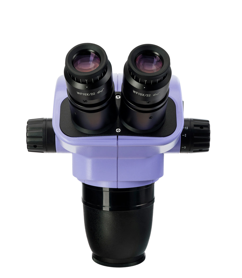 Lo schema ottico di tipo Greenough permette un’ampia profondità di campo e produce immagini tridimensionali grazie a un angolo stereo di 15°. La testata del microscopio ingrandisce l’immagine di un oggetto senza perdere l’orientamento spaziale.