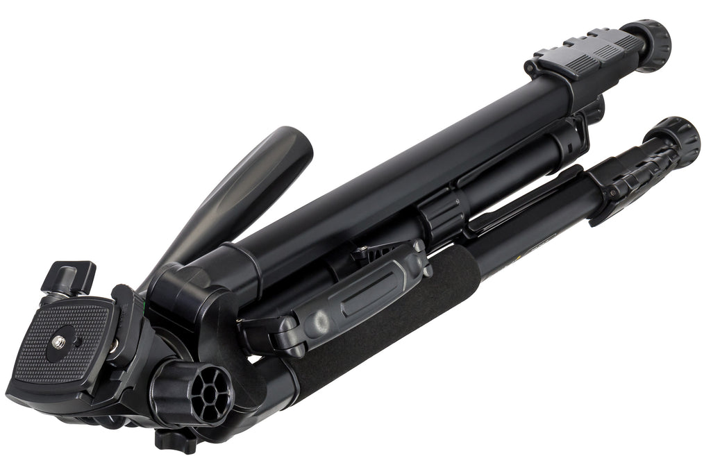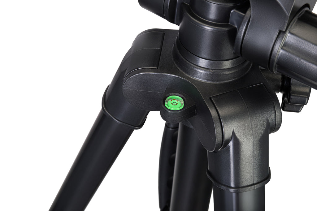 Il treppiede presenza un’ampia gamma di regolazioni dell’altezza. Innanzitutto, è possibile estendere le gambe telescopiche. Secondariamente, la colonna centrale può essere rialzata. L’altezza massima è paria a 1760 mm. La livella a bolla consente di posizionare la fotocamera parallelamente al suolo. Per rendere il treppiede più stabile, è possibile appendere un contrappeso a un gancio sulla colonna centrale.