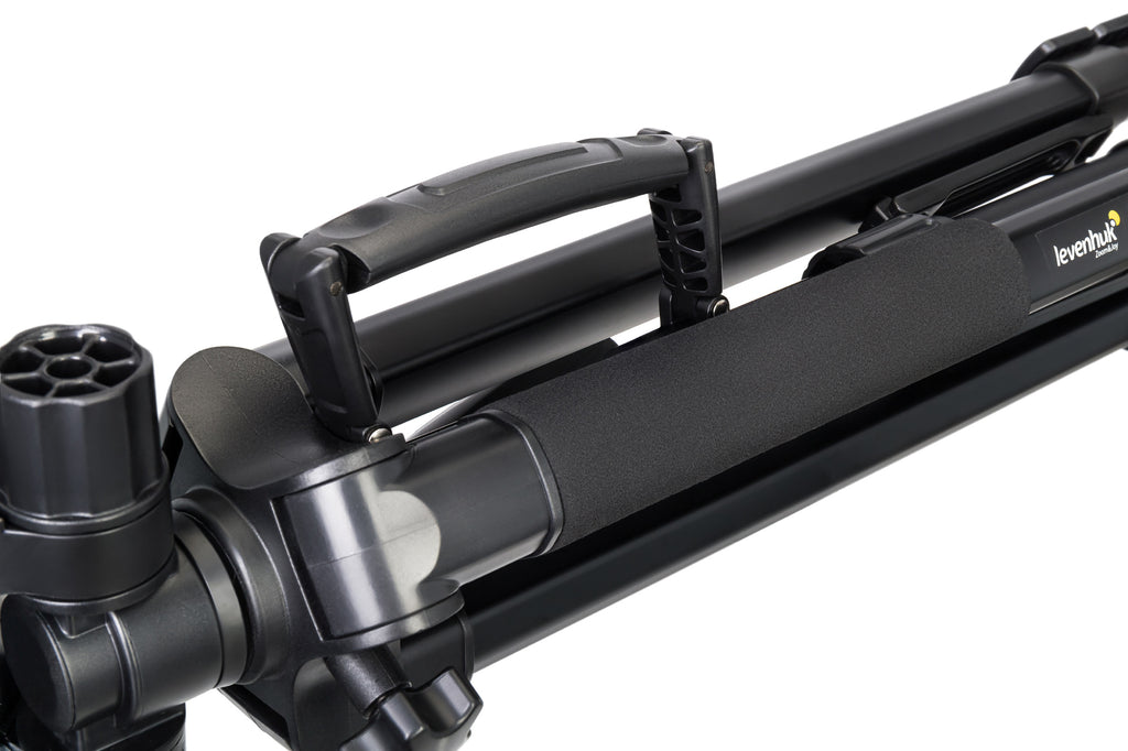 Il vantaggio del treppiede Levenhuk Level PLUS VT10 risiede nel poterlo trasformare in un monopiede in qualsiasi momento. Basta estenderlo completamente e rimuovere le colonna centrale affinché diventi un monopiede da impugnare a mano. Grazie a questa funzionalità, il treppiede si rivela comodo per le escursioni, in quanto può essere usato sia in modo stazionario che impugnandolo a mano. La capacità di carico del treppiede è di 2 kg. Tale limite va tenuto in considerazione quando si decide quale strumento installare. Il kit comprende un astuccio per la protezione e il trasporto.