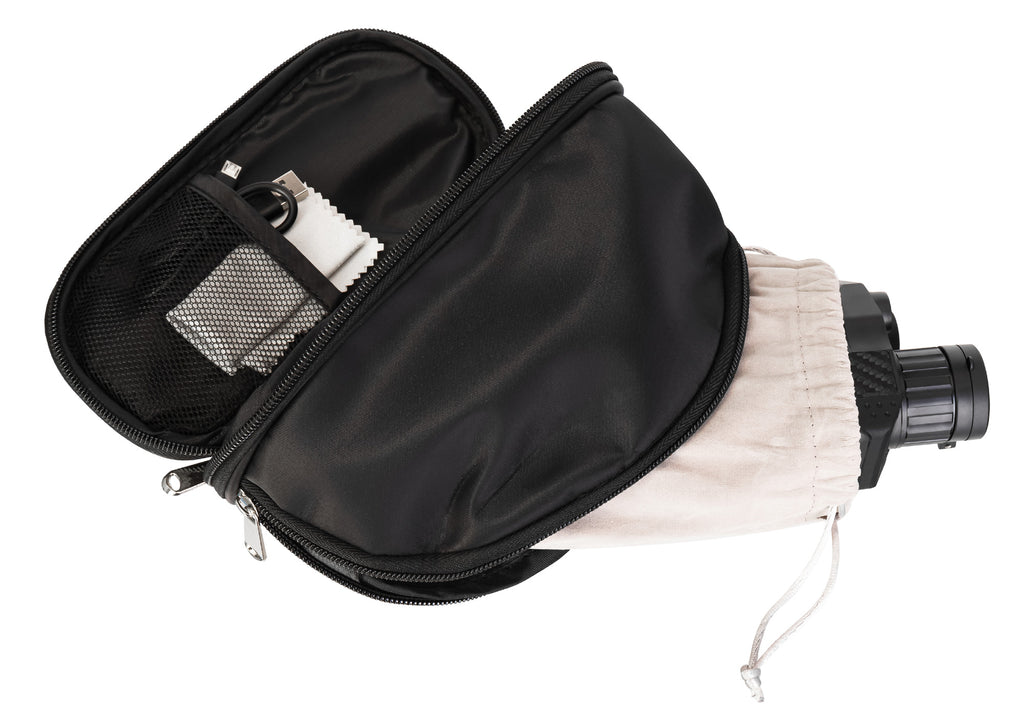 Uno dei vantaggi del design del modello Levenhuk Atom Digital DNM100 è una lente convessa che ingrandisce l’immagine sul display integrato. Inoltre, la lente obiettivo è più grande del monocolo Levenhuk Atom Digital DNM50 e del binocolo Levenhuk Atom Digital DNM100, con un diametro di 35 mm che permette alla lente di raccogliere maggior luce. Il modello presenta inoltre una chiara illuminazione IR per l’osservazione notturna. Tutte queste caratteristiche consentono al sistema optoelettronico di produrre un’immagine nitida e luminosa della più alta qualità.