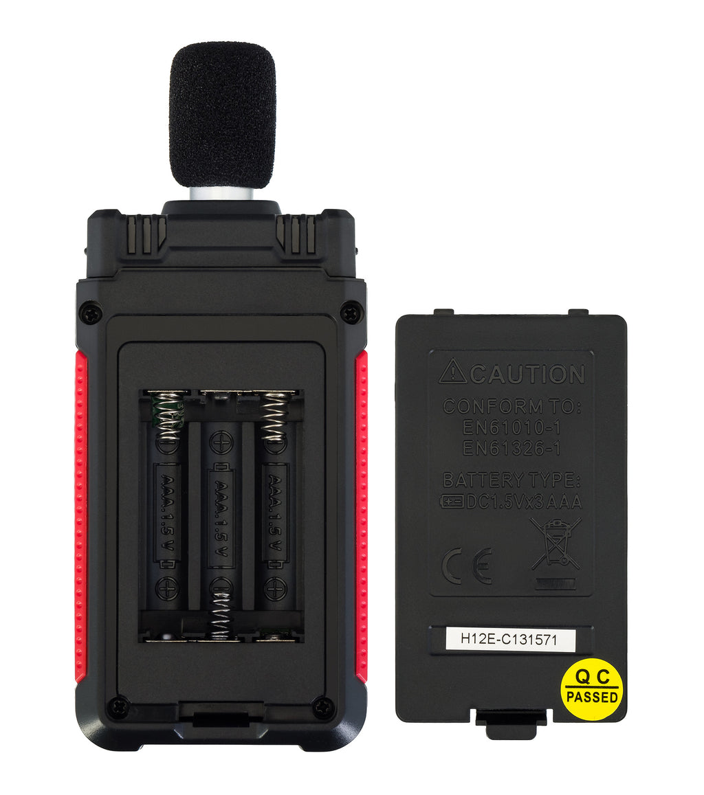 Il dispositivo richiede 3 batterie AAA per funzionare (non incluse). Per risparmiare la carica della batteria, il fonometro si spegne automaticamente dopo 10 secondi di inattività. Se necessario, questa opzione può essere disabilitata. Oltre a visualizzare dati di misurazione sullo schermo, è presente un indicatore del livello di carica della batteria.