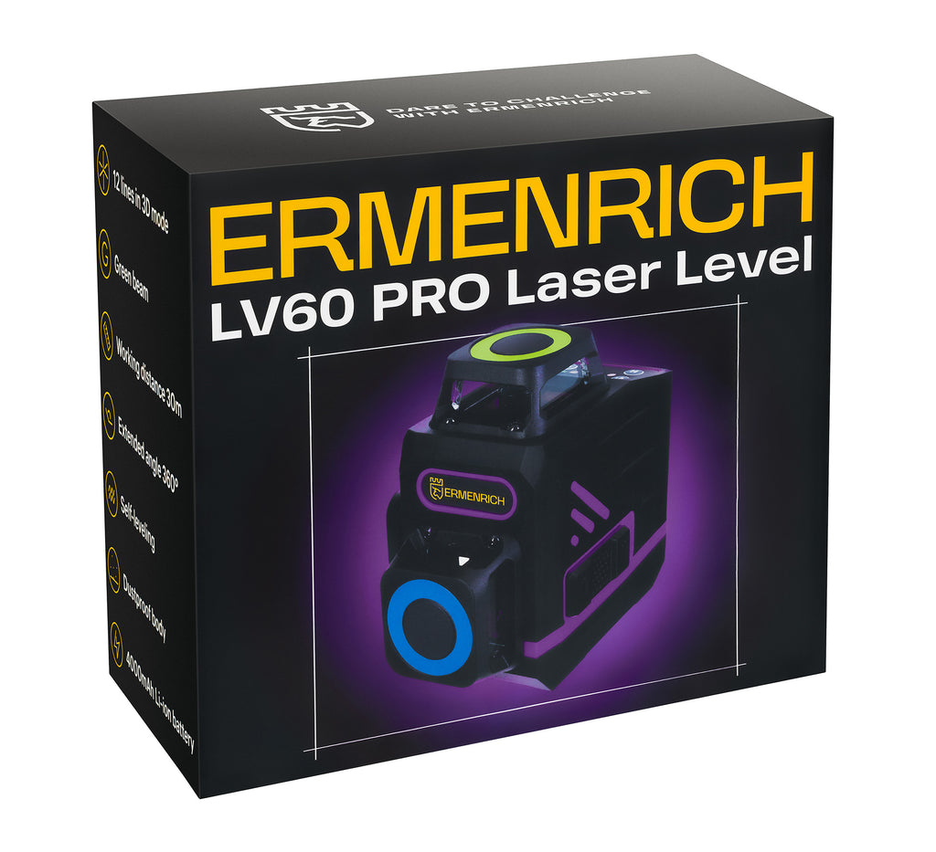 La livella laser portatile Ermenrich PRO LV60 è l’assistente perfetto per stuccatori, imbianchini, installatori e per tutti i tipi di lavori di rifinitura in cartongesso. Le sue caratteristiche sono adatti a tutti i tipi di lavori edili e di ristrutturazione. Con dimensioni di 7x7x9,5 cm, il suo peso è di soli 340 grammi. Il dispositivo si adatta facilmente nel palmo della mano ed è comodo da riporre e trasportare.