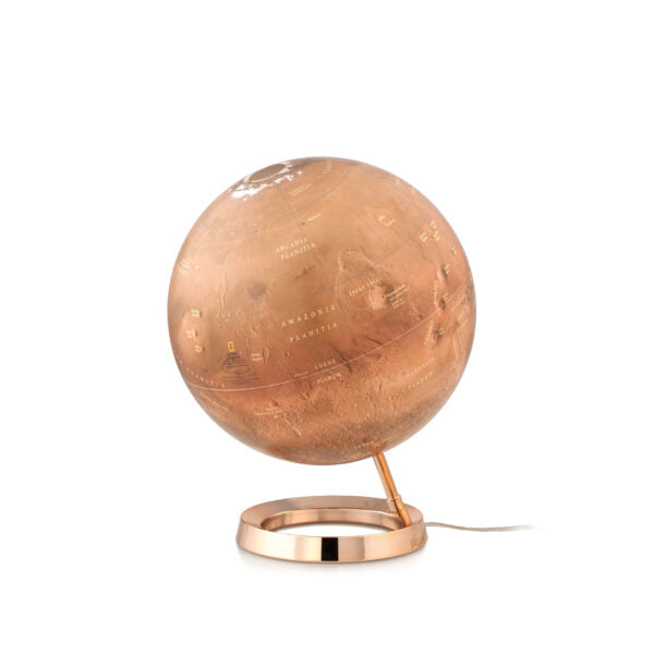 Mappamondo del pianeta Marte illuminato DiProgress Tecnodidattica con cartografia ufficiale National Geographic Marte, dal diametro di 30cm, illuminazione LED e base in policarbonato.