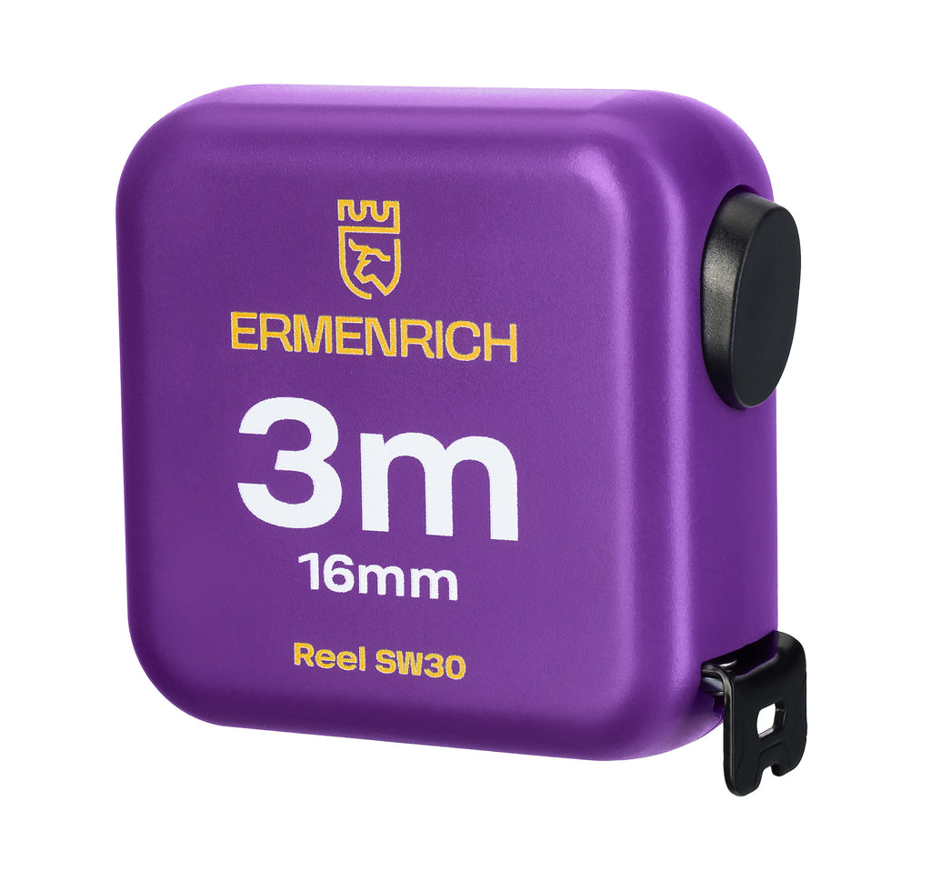 Il metro a nastro Ermenrich Reel SW30 è realizzato in acciaio spazzolato resistente a rotture e flessioni. Le linee e i numeri sono contrassegnati in lettere grandi su un lato del nastro. L’alloggiamento del metro a nastro è realizzato in plastica ABS ad alta resistenza resistente agli urti. Il metro a nastro sarà sempre evidente tra gli altri strumenti grazie al suo colore viola brillante.