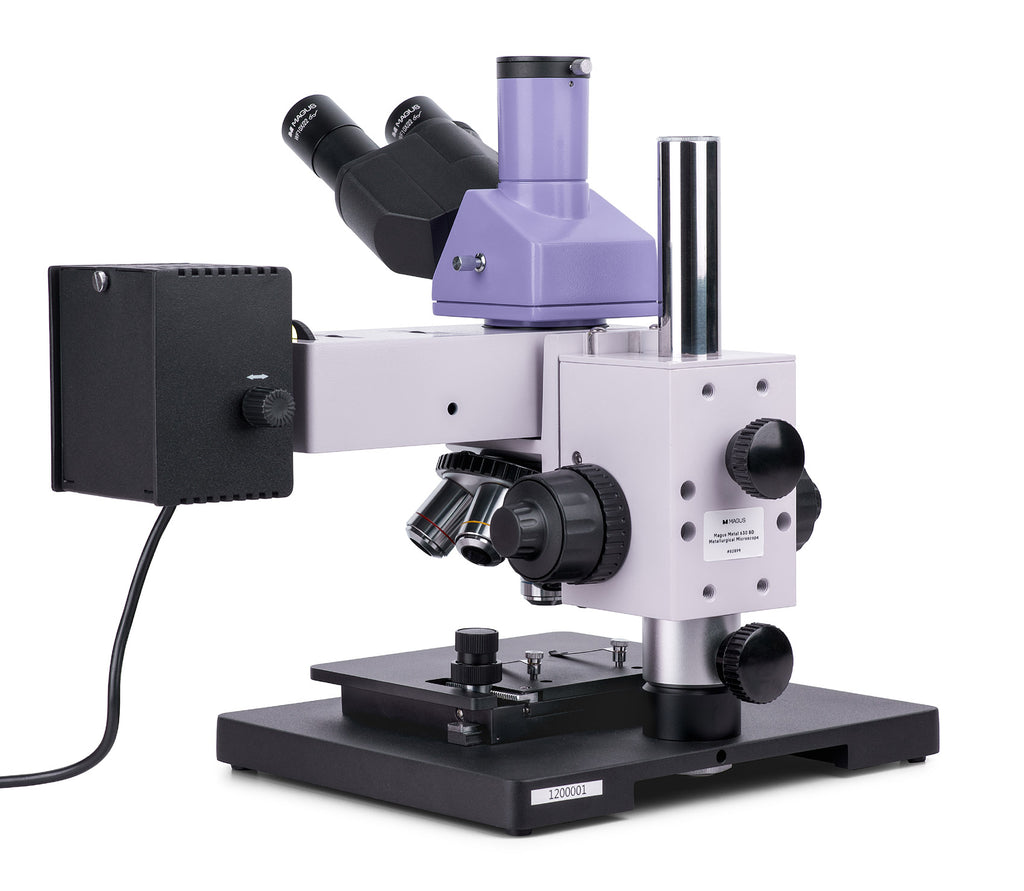 Microscopio metallografico MAGUS Metal 630 BD per tecniche di microscopia a campo chiaro, scuro e polarizzazione. La potente illuminazione con luce alogena produce un’immagine di qualità con qualsiasi lente obiettivo e metodo di microscopia. Il microscopio è progettato per il controllo qualità e lo studio della microstruttura di materiali semiconduttori, metalli e oggetti opachi. È utilizzato per condurre ricerche presso impianti di produzione, laboratori di centri di ricerca e dipartimenti universitari.
