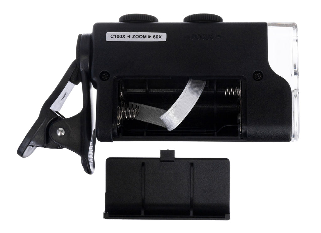 - Microscopio tascabile con una levetta per il fissaggio a un dispositivo mobile