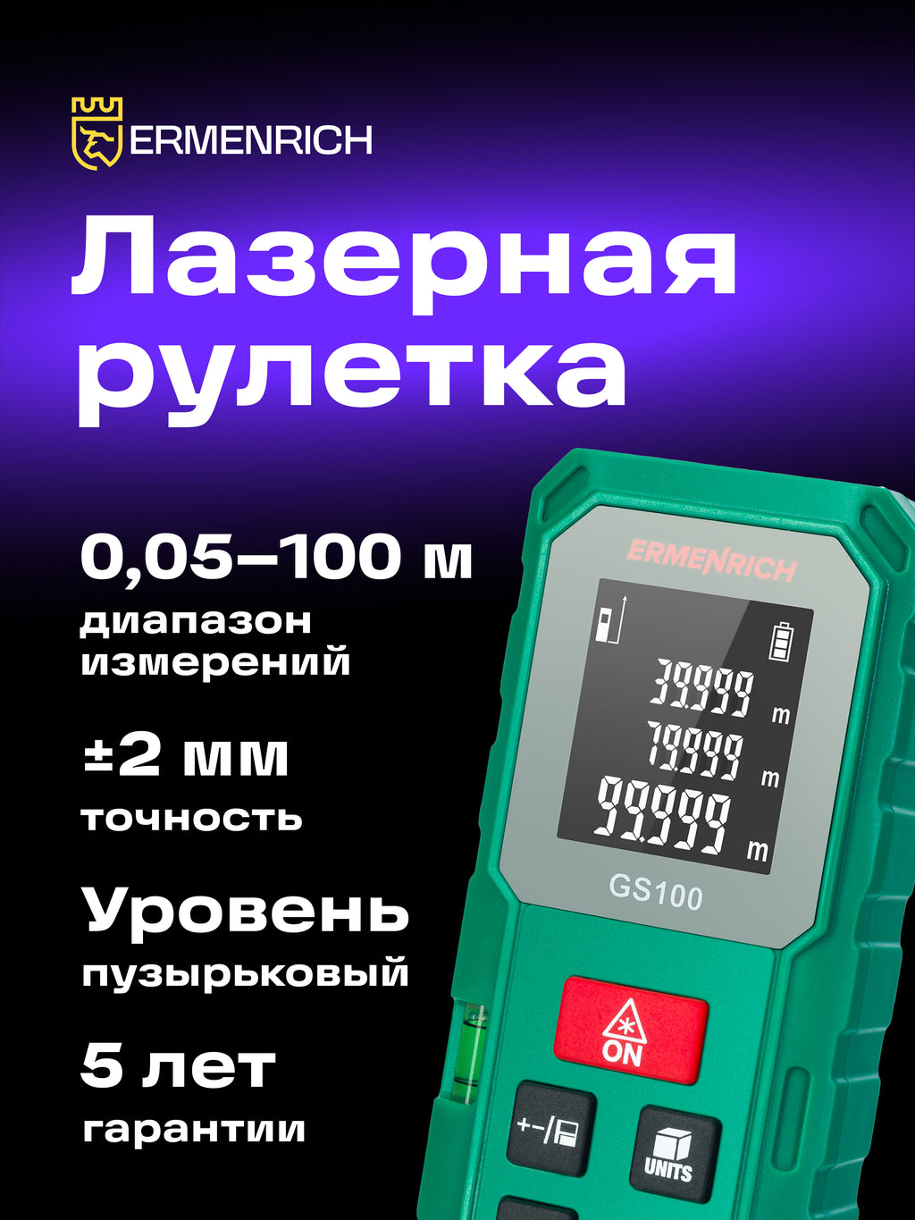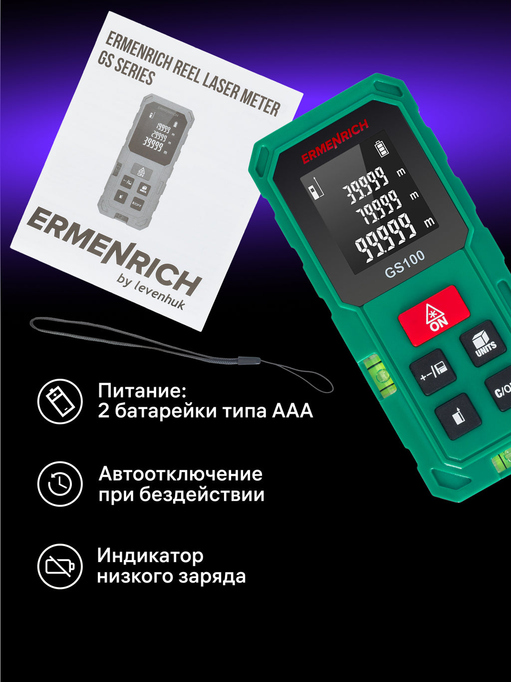 Ermenrich Reel PLUS GS100 è un moderno misuratore laser per la misurazione precisa e comoda di distanze, volumi e aree. Una funzione di calcolo indiretto basato sul teorema di Pitagora permette di calcolare la distanza anche se è presente un ostacolo nel percorso del laser o il dispositivo non può essere posizionato nella posizione desiderata. Utilizzando misurazioni aggiuntive, questa funzione calcola la distanza desiderata con la massima precisione.