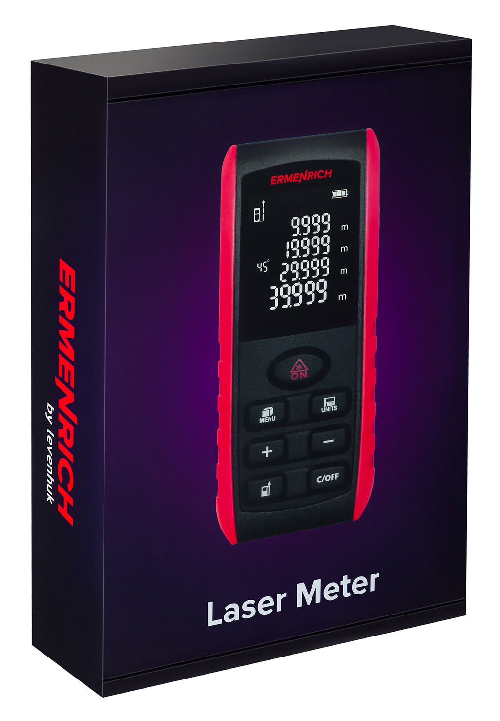 Il misuratore laser Ermenrich Reel PRO GE80 è uno strumento di misurazione versatile che è utile per molte attività di ingegneria, costruzione, riparazioni e domestiche. Permette di misurare non solo la distanza ma di calcolare anche il volume, l’area e gli angoli. È stata aggiunta la funzione del teorema di Pitagora nel caso in cui non sia possibile misurare la distanza in linea retta (ad esempio, sono presenti ostacoli nel percorso del raggio laser). In questo caso, il dispositivo effettuerà i calcoli in base a misurazioni intermedie.