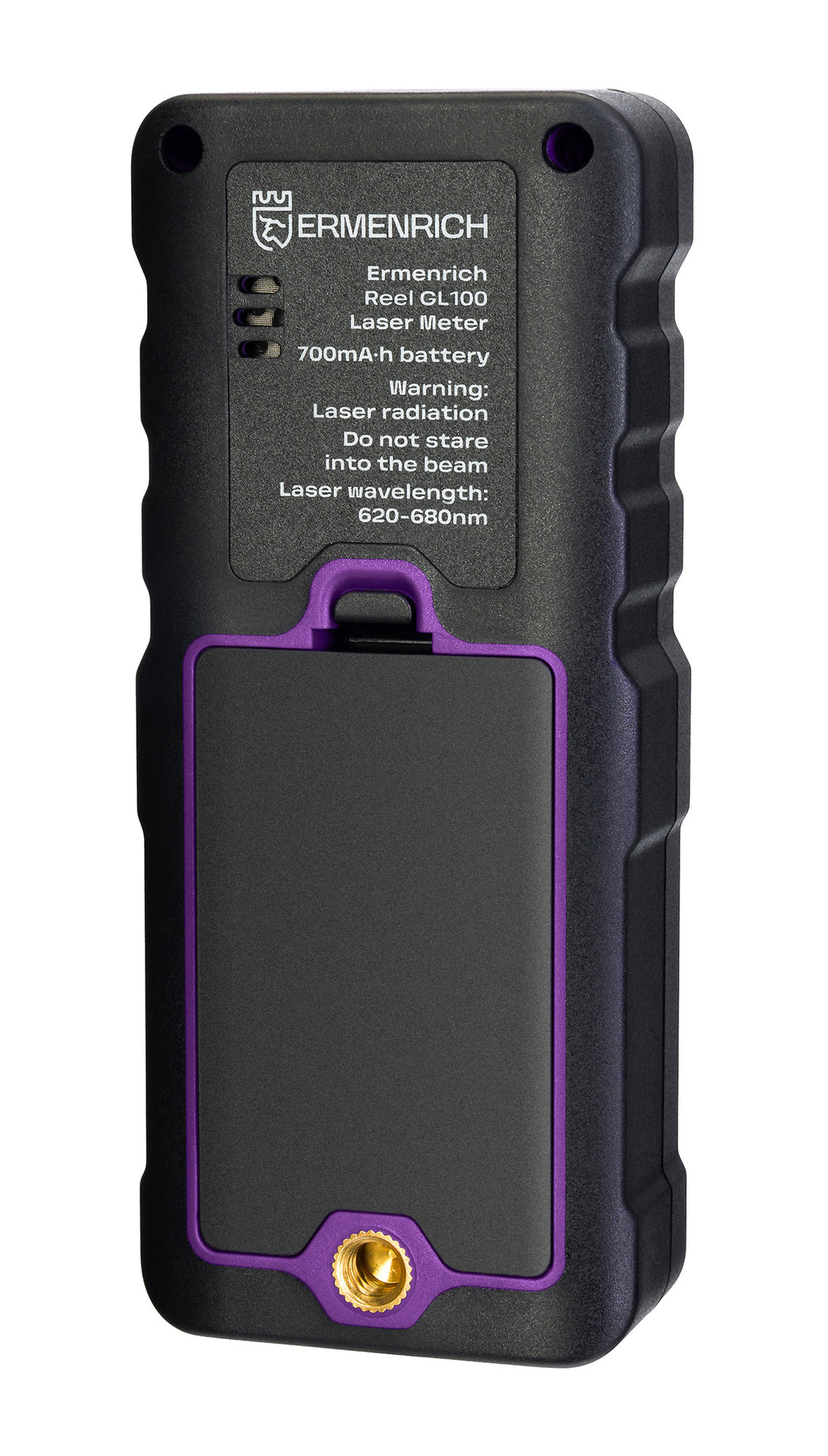 Il misuratore laser Ermenrich Reel PRO GL100 è alimentato da una batteria al litio integrata che fornisce 3 ore di funzionamento continuo. Il laser si spegne automaticamente dopo 30 secondi di inattività e l’intero dispositivo si spegne dopo 120 secondi.
