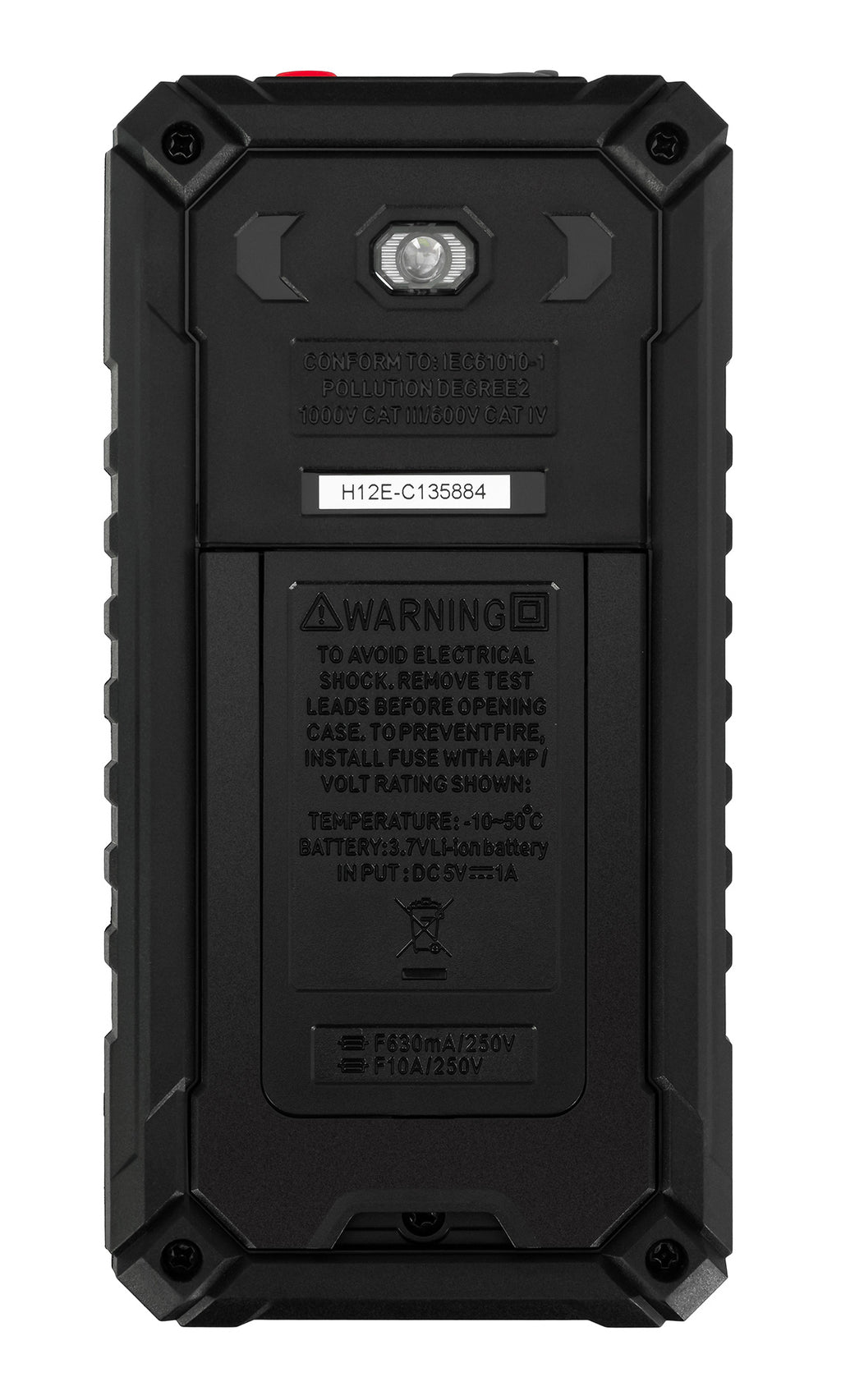 - Combina le funzioni di 7 strumenti di misurazione: amperometro, voltmetro, ohmmetro, misuratore di frequenza, misuratore di capacità, misuratore del ciclo di lavoro e sensore termocoppia