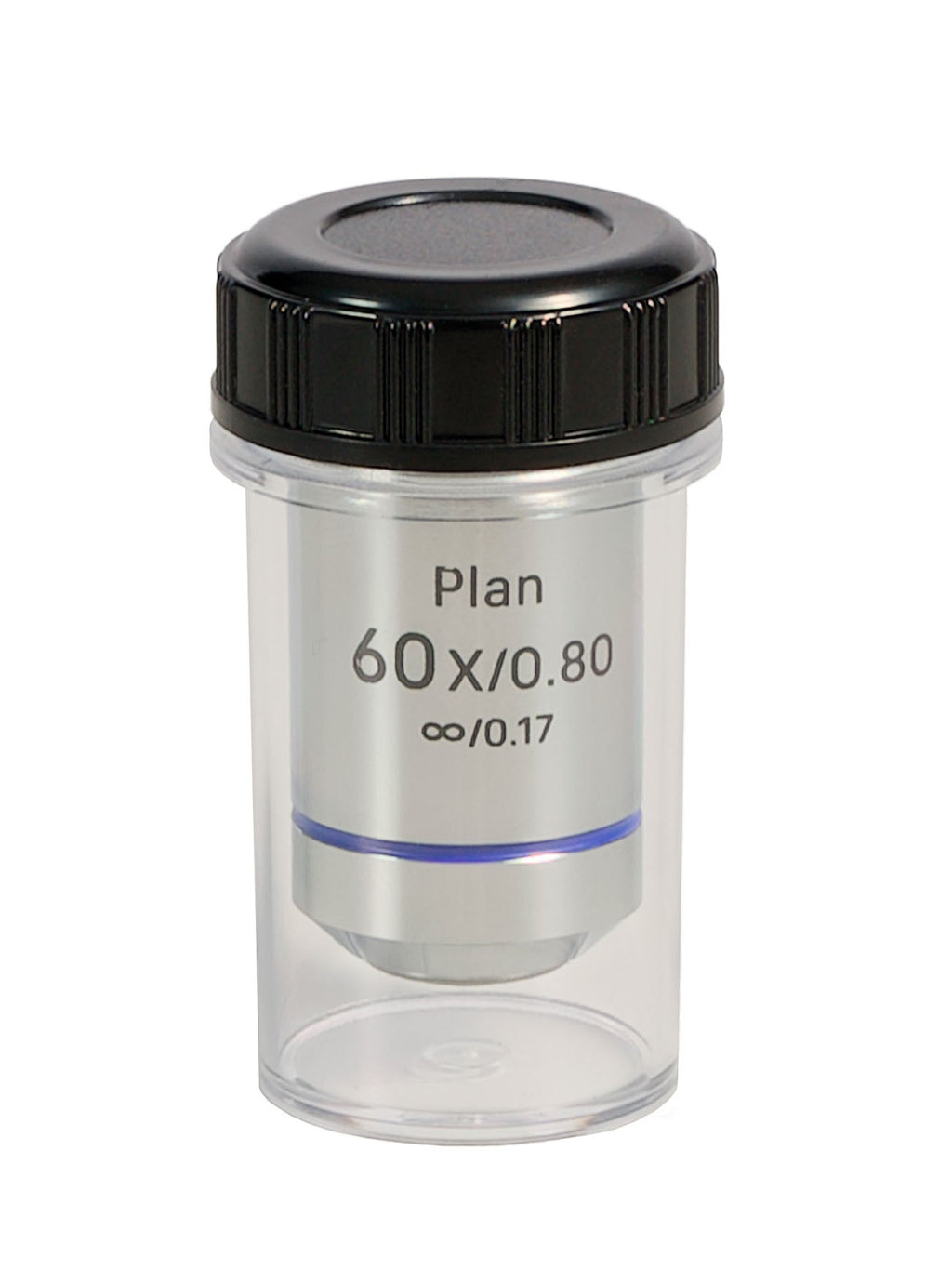Quando si utilizza un obiettivo 60x, il limite inferiore dell’ingrandimento utile del microscopio è 400x. Un ingrandimento inferiore non consente di distinguere i dettagli del campione la cui immagine è formata dall’obiettivo. Il limite superiore dell’ingrandimento utile, quando si utilizza un obiettivo da 60x, è 800x. Un ingrandimento maggiore è considerato 'inutile' in quanto non fornisce alcun nuovo dettaglio nell’immagine del campione. Con l’obiettivo da 60x/0,80, utilizzare oculari con ingrandimenti da 7x a 16x.