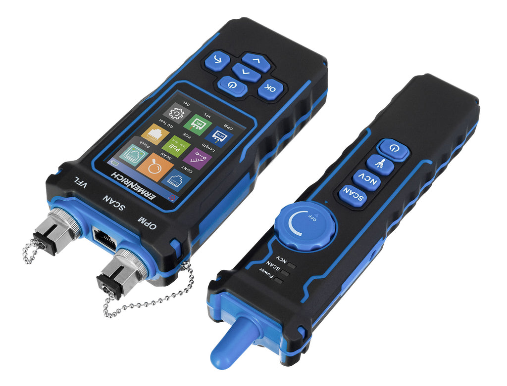 L’Ermenrich NetGeeks NP60 combina le funzionalità di un tester per cavi, di un misuratore di lunghezza dei cavi e di un multimetro ottico: si tratta di un’ottima scelta per l’installazione, il test e la manutenzione di reti di cavi con doppini ritorti, comprese quelle usate per le connessioni Internet ad alta velocità. È uno strumento perfetto per l’uso domestico ed è molto richiesto anche dai professionisti.