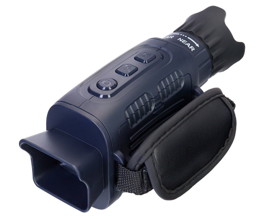Il sistema ottico-digitale di questo strumento è racchiuso da un corpo impermeabile e dal design ergonomico. Il monoculare assicura una presa salda e i pulsanti di controllo sono proprio sotto le dita dell’utente, per una maggiore comodità. Le batterie standard garantiscono un’autonomia dalle 4 alle 10 ore (a seconda dell’intensità della luce IR). Lo strumento è venduto accompagnato da una treppiede da tavolo, perfetto per lunghe osservazioni stazionarie e per la stabilizzazione dell’immagine in caso di registrazione video.